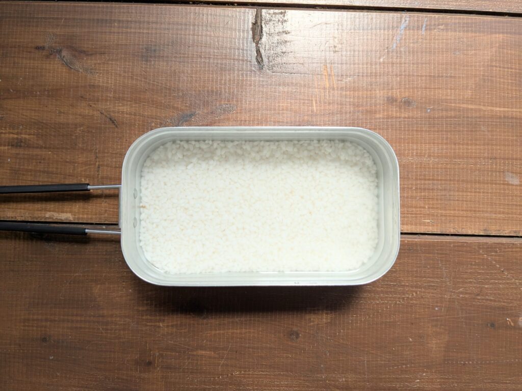 米1合を研いで、30分から1時間ほど浸水させます。